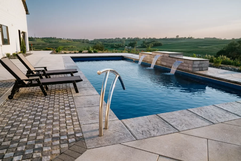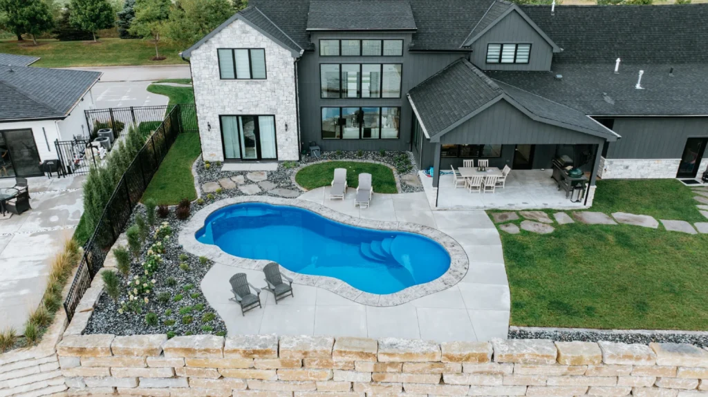 AJ’s did “the works” for this new home build in Blair, Nebraska! A custom pool, hardscaping, custom lighting,