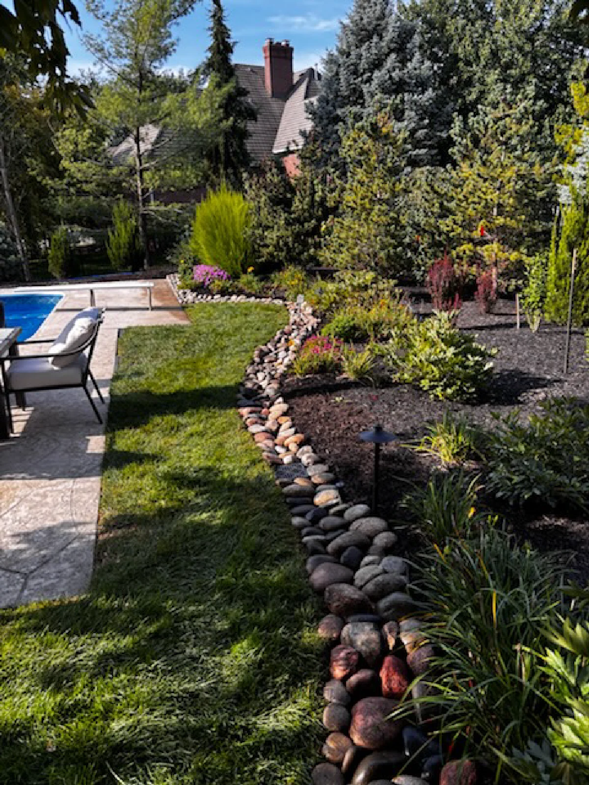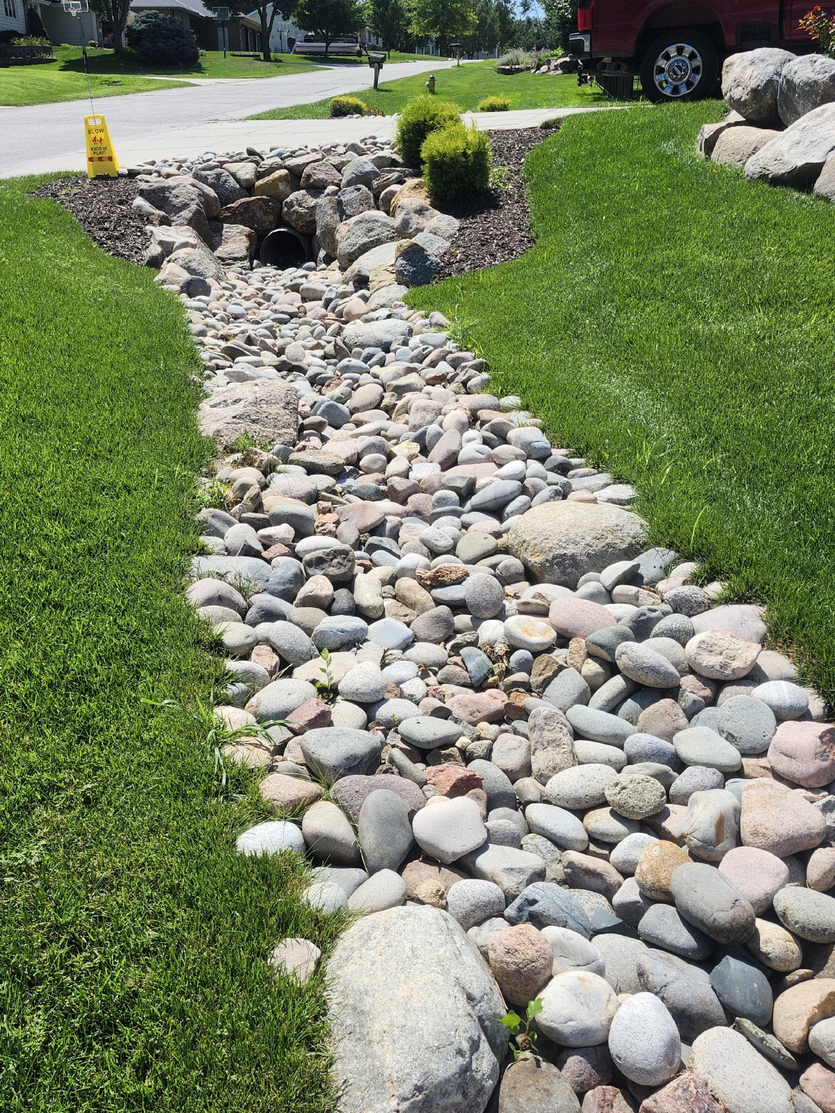 We design dry creek beds to blend seamlessly with your landscape while ensuring proper water flow during heavy rainfall.